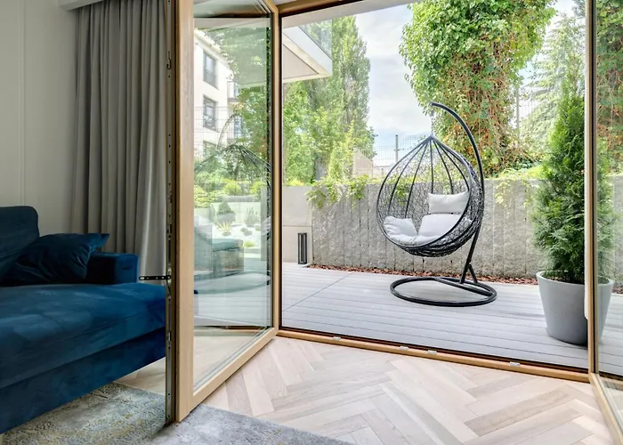 Dr Apartments - Mavik俯瞰着内院,仅需20分钟即可到达索波特的森林歌剧院. 宿处设有配备休息区,卫星频道平板电视 和电视的客房和小厨房.